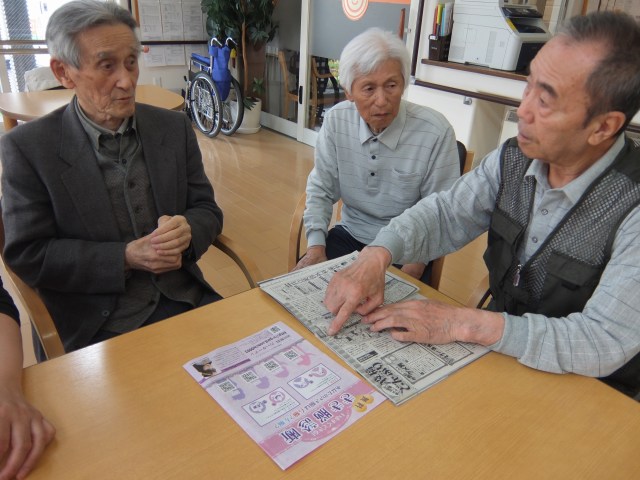 昼食後、男性の利用者様同士、
