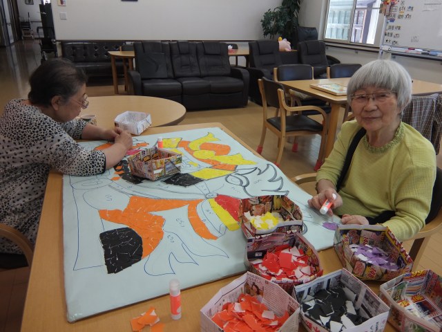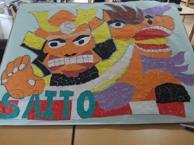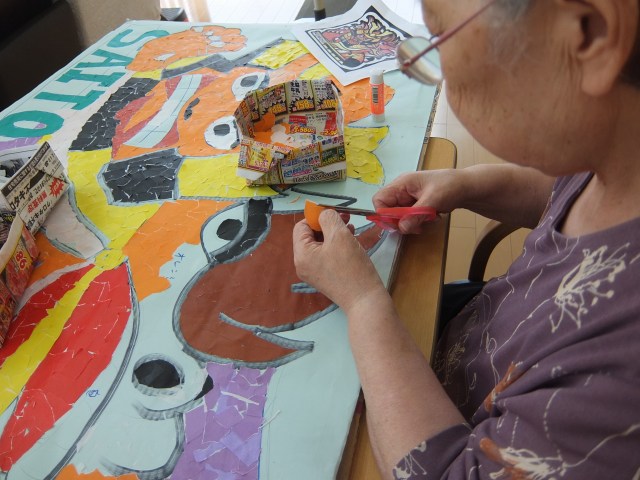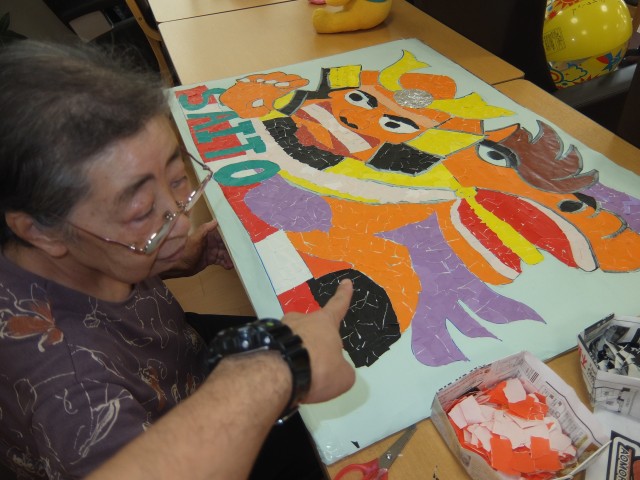 「ちぎり絵ねぶた」も完成間近です。